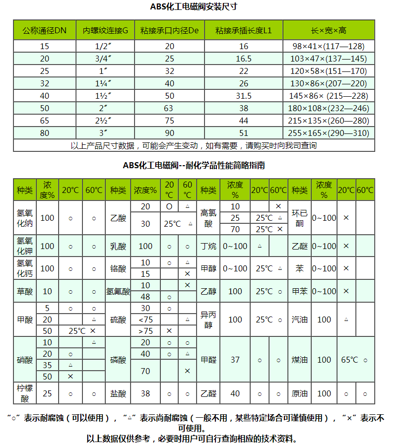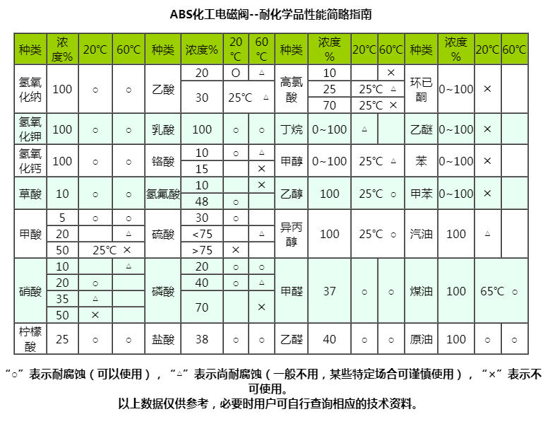 “禹成牌”化工電磁閥由于啟閉原理的獨特性和結構設計的科學性,產品的所有部件均可根據不同的化學介質選用不同的高分子材料制造,同時由于它的先導孔和卸壓孔是傳統閥的幾十倍大,復位彈簧設置在介質外,因此它具有不易堵塞、耐酸堿、抗腐蝕和使用壽命長等優點,可適應于各種化學流體介質,是化工流體自動化生產設備的最佳配套產品。