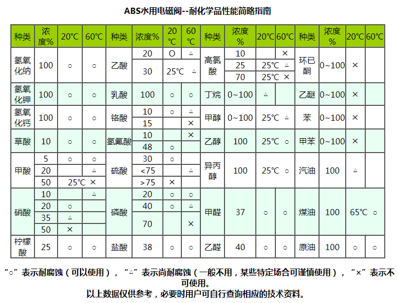“禹成牌”水用電磁閥由于啟閉原理的獨特性和結構設計的科學性,產品的所有部件均可根據不同的化學介質選用不同的高分子材料制造,同時由于它的先導孔和卸壓孔是傳統閥的幾十倍大,復位彈簧設置在介質外,因此它具有不易堵塞、耐酸堿、抗腐蝕和使用壽命長等優點,可適應于各種化學流體介質,是化工流體自動化生產設備的最佳配套產品。