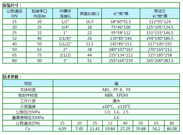本產品民用系列選用國際通用型食品級工程塑料(ABS、PP-R、PE等)注造。工業用系列選用進口阻燃型高強度工程塑料(PC等)注造。產品具有重量輕、耐腐蝕、不生銹、不結垢、導冷不結霜、導熱系數低,絕緣性能好,環保衛生等優點。啟閉原理上:采用浮動閥芯,利用流體壓力差,誘導式啟閉的專利技術成果。因啟閉時無磨損(屬接觸型啟閉),而解決了傳統閥門因強制性啟閉而造成的啟閉部件和密封件磨損所引起的“跑、冒、滴、漏”的歷史性難題。它具有安裝使用方便,節能節水效果顯著(可節約傳統閥門的外泄內漏所浪費掉的水),使用壽命長及物美價廉等特點。